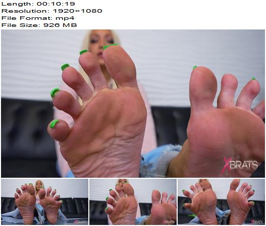 Out of all the brats we shoot Britteni has the most insane toe spread you’ll see! With her super long toe nails and sexy soles, she knows how to turn you on. Today though she is going the extra mile by making you lick her sweaty feet and soles and jerking off to them.Starring: Britteni Bank